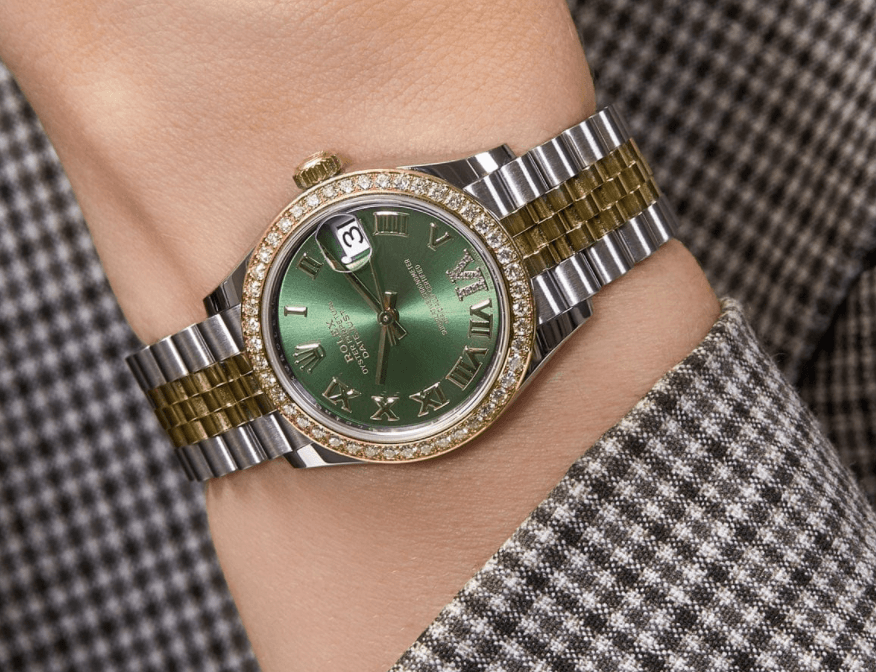 Date just ladies rose gold olive diamond green dial 28mm Original price was: US$709,99.Current price is: US$309,99.
