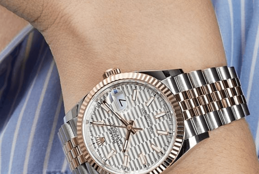 Date just rose gold silver fluted motif dial 36mm