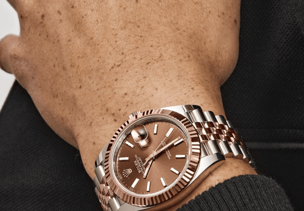 Date just two toned rose gold brown dial 41mm