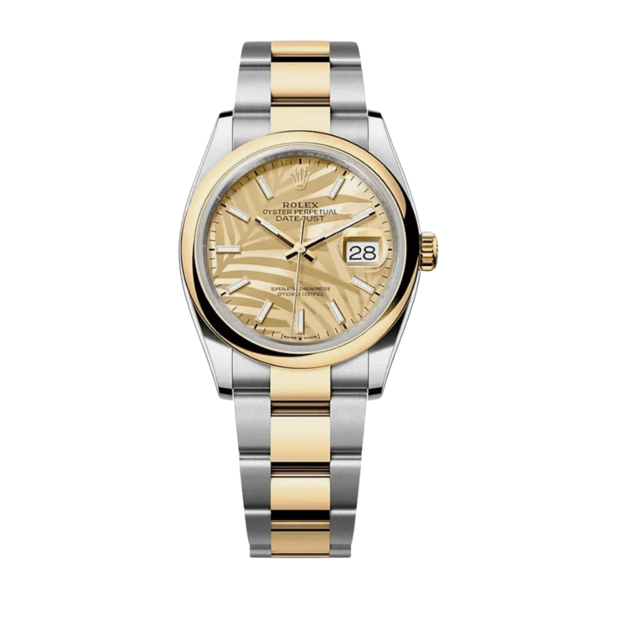 Date just yellow gold palm motif dial 36mm