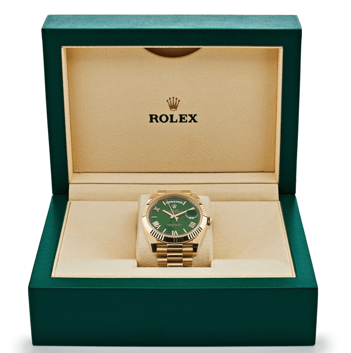 Day-date yellow gold green numerals dial 40mm