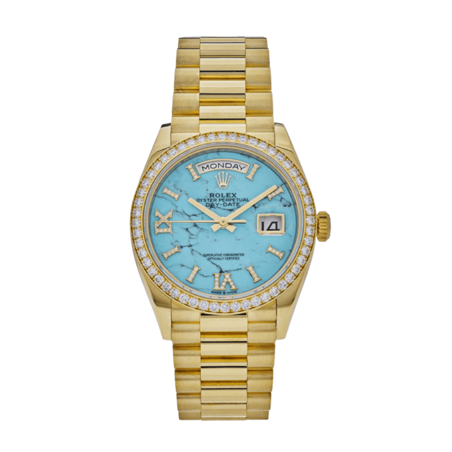 Day-date yellow gold turquoise diamond dial 36mm