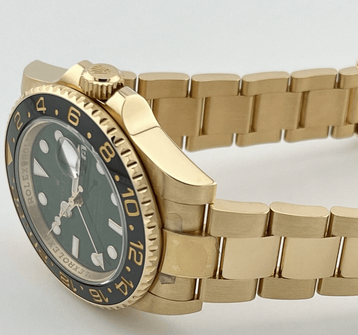 Gmt-master ii yellow gold green dial 40mm